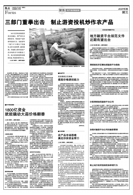 最近一段时间,大蒜、绿豆、辣椒等农副产品价格先后出现大幅上涨。对此,业内人士在接受上海证券报采访时表示,促使农产品价格上涨的因素有很多,包括产量下降导致供应紧张等,游资炒作则在其中起了重要推动作用。据测算,约1800亿元资金就能使大蒜价格翻番。