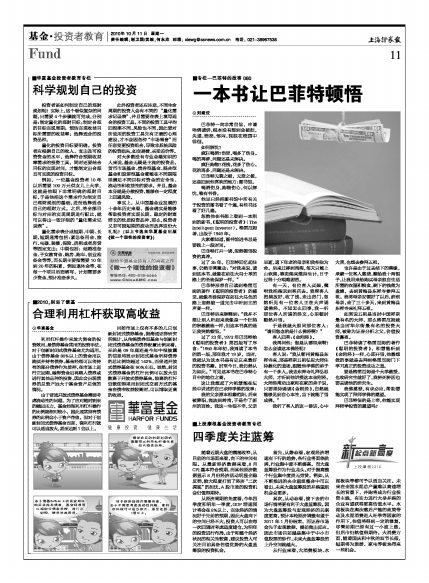 巴菲特后来解释到:“我并不想让别人听起来我像是一个狂热的宗教教徒一样,但这本书真的是让我突然顿悟。”