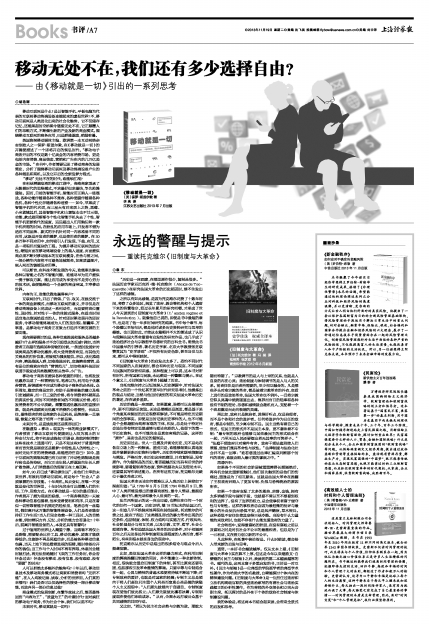 如今,90后已成“移动原住民”,在他们主宰的未来世界,有效利用移动互联网,将是每个“社会人”必须掌握的生存技能。十年商机,风云变幻,在唯一不变就是变化的世界里,十年时光完全可以倾覆人们的生活、工作、思维方式。在《移动就是一切》的最后部分,作者展开了颇为现实的联想,一个商务精英的一天被各种移动信息包围着,他享受着便利和有序,只是在看似一切皆靠智能手机搞定的轻松里,笔者总有一丝隐忧,假如离开这万能的智能终端设备,人们是否还能安排好工作生活?当人们完全依赖一种工具时,人的自然本能,例如辨识方向、记忆、分析的能力会否退化?十年后,脱离开智能设备的人,本身还具有智慧吗?