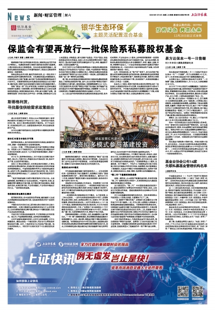 来自市场的消息显示,为推进资金运用市场化改革,推动保险资产管理行业创新,监管部门正在研究适时修订相关监管政策,如酝酿拓宽保险资金投资基础设施项目的行业范围、放宽投资重大工程建设的单一资产集中度比例等。