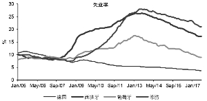 另一个挑战来自于美联储货币政策逐步收紧可能带来的潜在政策风险。在笔者看来,美国经济复苏与前期美联储奉行的宽松货币政策之间关系较为紧密。虽然美国经济持续反弹,但主要体现在资产价格的持续上涨上,经济结构性改革进展仍然较为缓慢。例如,虽然当前美国贸易赤字有所降低,但主要得益于能源贸易逆差大幅减少,非能源贸易逆差仍然远高于国际金融危机之前水平。还有,再工业化进展缓慢。去年,美国制造业增加值占GDP的比重延续了国际金融危机以来的下降态势。此外,“高消费、低储蓄”的格局仍然没有得到明显改观。考虑到美联储已经启动缩表及预期明年将加息三次,美国经济复苏能否脱离对宽松货币政策的依赖而实现可持续增长,具体情况仍有待于进一步观察。
