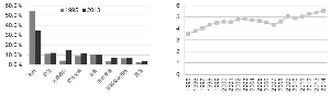 1995年与2013年中国人均各项支出占比对比