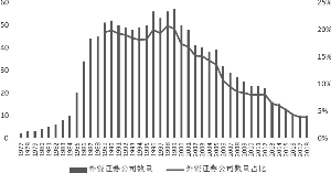 1.短期内外资券商占比迅速提升,长期竞争后逐步下降