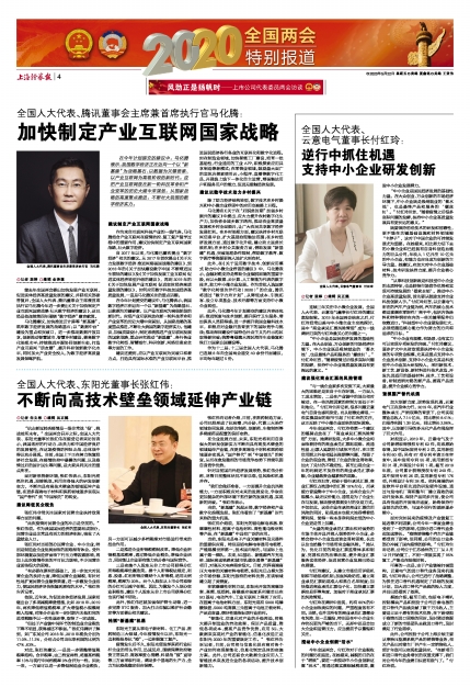全国人大代表、腾讯董事会主席兼首席执行官马化腾:加快制定产业互联网国家战略