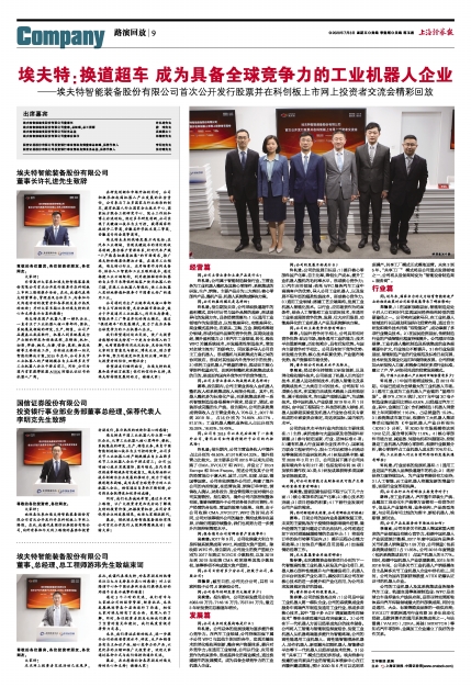 ——埃夫特智能装备股份有限公司首次公开发行股票并在科创板上市网上投资者交流会精彩回放