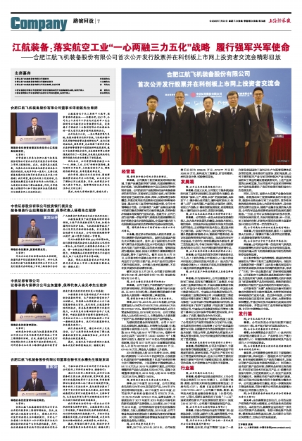 ——合肥江航飞机装备股份有限公司首次公开发行股票并在科创板上市网上投资者交流会精彩回放