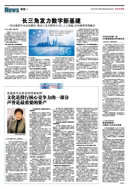 高盛高华证券总经理索莉晖日前接受上海证券报记者专访,对企业文化建设之于投行的作用和意义,作出了这样的概括。在她看来,在经济转型升级的大背景下,资本市场建设发展被提到了前所未有的高度,证券公司面对这一历史机遇,必须认真谋划未来之路该如何走。在此时推进证券行业文化建设,正是恰逢其时。