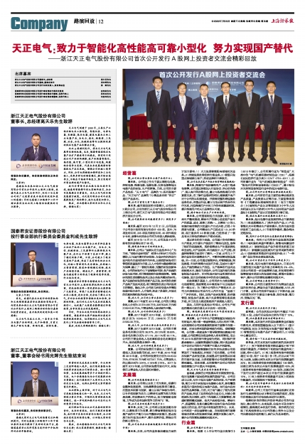 ——浙江天正电气股份有限公司首次公开发行A股网上投资者交流会精彩回放