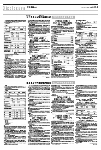 具体内容详见公司同日披露的《浙江鼎力机械股份有限公司2020年半年度报告》全文及其摘要。