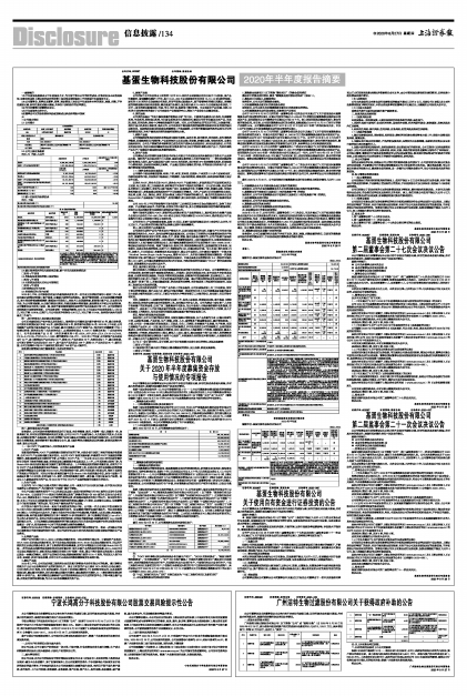 根据中国证监会发布的《上市公司监管指引第2号一一上市公司募集资金管理和使用的监管要求》(证监会公告[2012]44号)和上海证券交易所发布的《上海证券交易所上市公司募集资金管理办法(2013年修订)》等有关规定,基蛋生物科技股份有限公司(以下简称“公司”或“本公司”)董事会编制了截至2020年6月30日的《2020年半年度募集资金存放与使用情况的专项报告》。