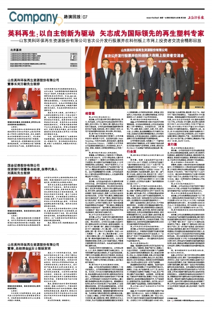 ——山东英科环保再生资源股份有限公司首次公开发行股票并在科创板上市网上投资者交流会精彩回放