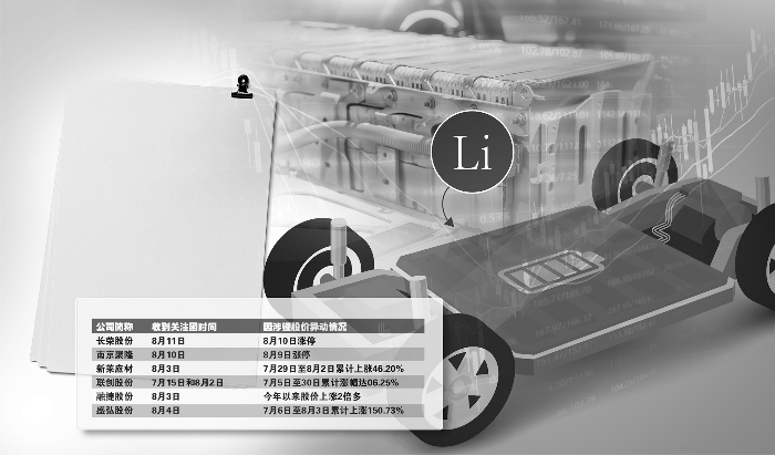 无独有偶。8月10日,股价连续两日大涨近30%的南京聚隆,收到了来自深交所的关注函,同样是因为“涉锂”。