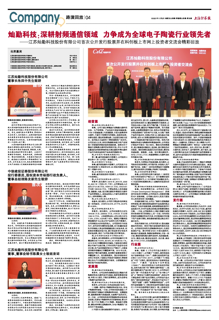 ——江苏灿勤科技股份有限公司首次公开发行股票并在科创板上市网上投资者交流会精彩回放