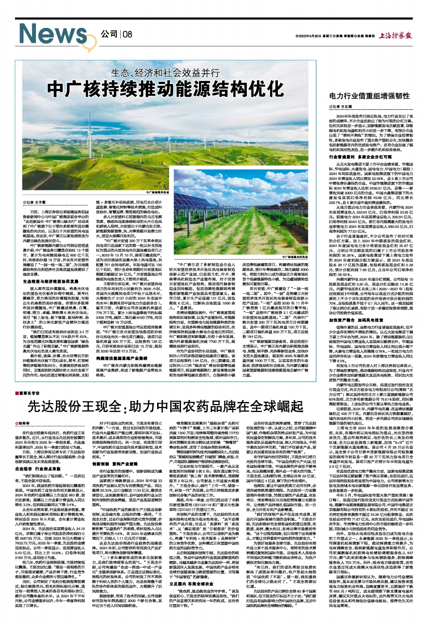 上海电力在2024年年报的发展战略部分提到,未来,在境内将以风电指标为重点,光伏坚持效益优先,重点布局消纳足、电价优的长三角及沿海区域,全力以赴发展海上新能源,加快“8+N”百万千瓦新能源大基地落地。该公司4月28日公告显示,其全资子公司甘肃申贤新能源有限公司投资建设的陇南市宕昌县一期20万千瓦风力发电项目全容量并网发电。该项目投产后预计年平均发电量为3.9亿千瓦时。