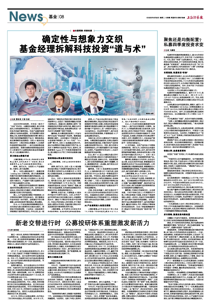 “组合目前核心持仓位是机器人板块,四季度也依然会重仓相关科技赛道。”沪上一位私募基金经理在接受上海证券报记者采访时表示,在无风险收益率下行、赚钱效应持续的过程中,资金将继续流入权益市场,四季度有望再度出现资金驱动的行情,成长空间大的科技标的将受益。另外,AI产业链并非全面高估,国产算力等确定性较高的细分赛道值得关注。