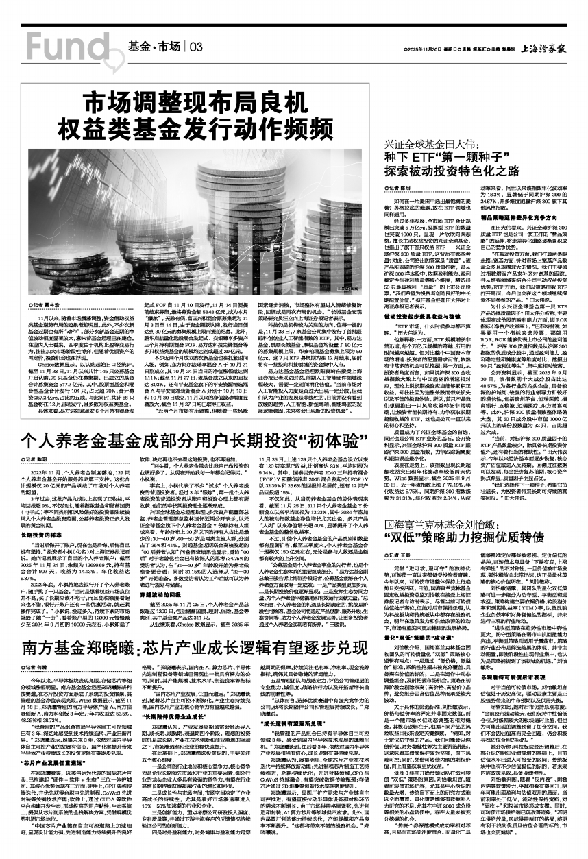 今年以来,半导体板块表现亮眼,存储芯片等细分领域涨幅明显。南方基金基金经理郑晓曦深耕科技赛道,在芯片投资方面形成了系统的投资框架,其管理的基金净值表现亮眼。Wind数据显示,截至11月18日,郑晓曦管理的南方半导体产业A、南方信息创新A、南方科创板3年定开年内收益达53.5%、48.29%和38.73%。