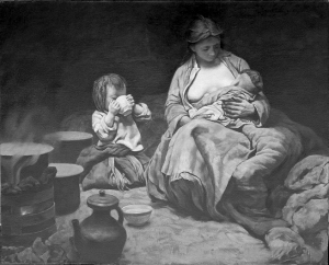 画家选择了一种既适宜表达内心情感,又能发挥自身优势的朴素的写实手法,尽力发掘自己在造型方面的潜能,借用古典油画中的透明半透明的多遍画法,以增强画面的厚重感与层次,在大色块的对比中凸显形体结构的魅力。
