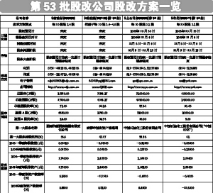 公司名称 S南建材(000906) S成建投(600109)(第52批) S上石化(600688)(第52批) S仪化(600871)(第52批) 改革方案要点 每10股送2.4股 相当于每10送3.4-4.6股 每10股送3.2股 每10股送3.2股