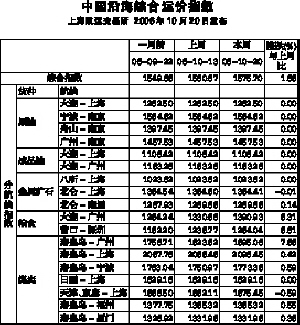 中国沿海综合运价指数 上海航运交易所 2006年10月20日发布