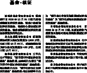国联安基金管理有限公司 招商银行自2006年10月25日起代理德盛稳健证券投资基金、德盛小盘精选证券投资基金、德盛安心混合型证券投资基金、德盛精选股票证券投资基金的销售及相关业务。 光大证券股份有限公司 获准注销的武钢认购权证数量为1600万份,生效日期10月23日。获准注销的雅戈尔认购权证数量为400万份,生效日期10月23日。