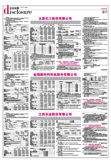 太原化工股份有限公司2006年第三季度报告