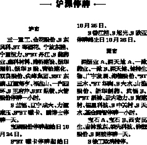 S香江控、S旭光、S欧亚停牌终止日10月26日。