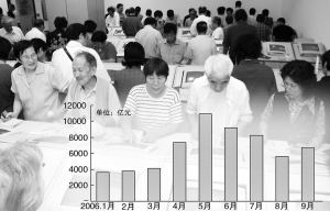 | | 9月份股票基金交易额重拾升势 徐汇 摄 张大伟 制图 |