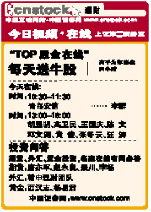 国 证 中 网 券 cnstock 本报互动网站·中国证券网www.cnstock.com 上证第一演播室 理财 国 证 中 网 券 cnstock 本报互动网站·中国证券网www.cnstock.com 上证第一演播室 理财 投资问答 “TOP股金在线” “TOP股金在线” 每天送牛股 今天在线: 时间:10:30-11:30 青岛安信 …… 李群 时间:13:00-16:00 胡昱明、高卫民、王国庆、陈 文 邓文渊、黄 俊、张冬云、汪 涛 期货、外汇、黄金投资,名家在线有问必答 期货:唐亦军、赵永良、景川、李杨 外汇:翰申理财团队 黄金:西汉志、杨易君 中国证券网:www.cnstock.com 高手为你解盘四小时 期货:唐亦军、赵永良、景川、李杨 外汇:翰申理财团队 黄金:西汉志、杨易君 期货:唐亦军、赵永良、景川、李杨 外汇:翰申理财团队 黄金:西汉志、杨易君