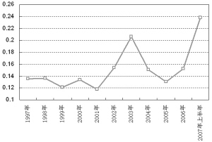 第三,部分信贷资金绕道进入股市。人民币贷款新增额与同期GDP的比值2006年以来出现明显反弹,2007年上半年这一比值为历史新高。贷款规模快于同期实体经济增长的扩张势头,说明部分贷款流入股票市场这一虚拟经济领域。