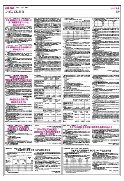广宇集团股份有限公司2007年度业绩快报