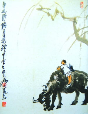 要验证上述这几点,只要大家再回过头去看看前几回我举例的所有“相对克隆”成品,相信就都能得到“具体落实”。到此处的图一与图二这儿,情况就大不一样了。前者是本人珍藏多年的李可染真迹作品;后者是南方某拍卖行2005年秋季上拍的一件李可染“保留节目”。这两件作品初看确实很相似,当细瞧时会发现是“大同小异”。以其笔墨、造型与款识的自如、娴熟与高质量来定性,两画应皆属“开门见山”(收藏界俗语,指懂行人都不会存疑的上好名家作品)等级之真迹。