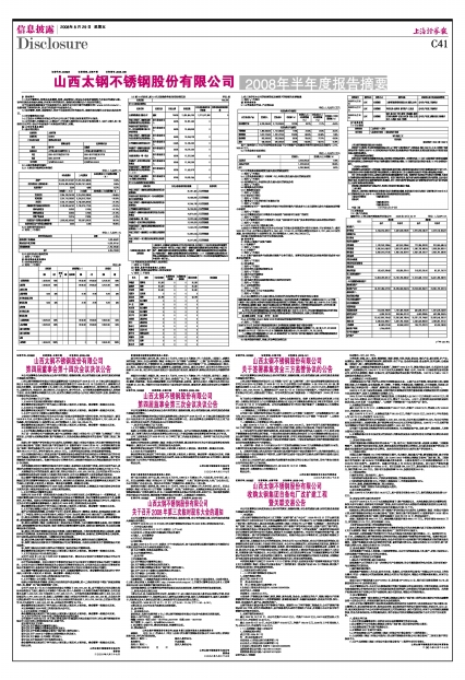 山西太钢不锈钢股份有限公司2008年半年度报告摘要