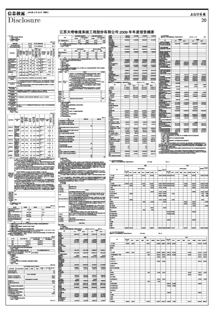 江苏天奇物流系统工程股份有限公司2009年年度报告摘要