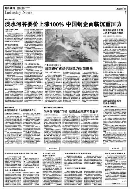 淡水河谷要价上涨100% 中国钢企面临沉重压力
