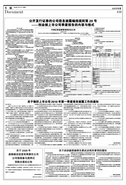 为做好上市公司2010年第一季度报告(以下简称“本次季报”)披露工作,根据中国证监会《公开发行证券的公司信息披露编报规则第13号<季度报告内容与格式特别规定>》(2007年修订)和《上海证券交易所股票上市规则》(以下简称“《股票上市规则》”)等有关规定,现通知如下。