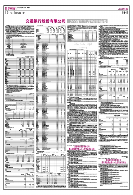 会议审议批准了《交通银行股份有限公司2009年年度报告及业绩公告》,同意按照有关监管规定予以公开披露。