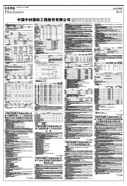 证券代码:600970 证券简称:中材国际 公告编号:临2010-009