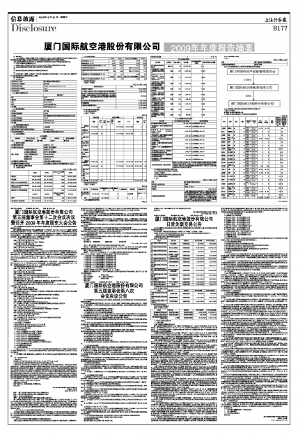 厦门国际航空港股份有限公司第五届董事会第十二次会议于2010年3月29日上午在厦门国际航空港花园酒店国际会议中心召开。本次会议召开前,公司已于2010年3月19日向全体董事发出会议通知,所有会议书面材料均在董事会会议召开前书面提交全体董事。会议由董事长王倜傥先生主持,本次会议应出席董事十一名,实到董事十一名,公司全体监事、高管列席会议。会议符合《公司法》和公司章程的有关规定。经与会董事认真讨论审议并一致通过了以下议案:
