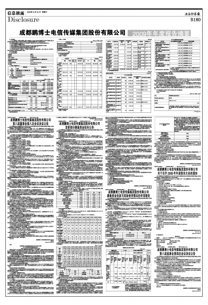成都鹏博士电信传媒集团股份有限公司(以下简称“公司”)第八届董事会第八次会议审议通过关于召开2009年年度股东大会的议案。
