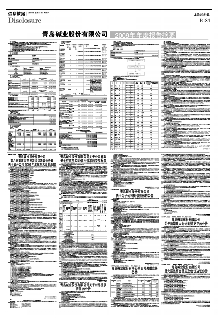 股票代码:600229 股票简称:青岛碱业 编号:临2010-009