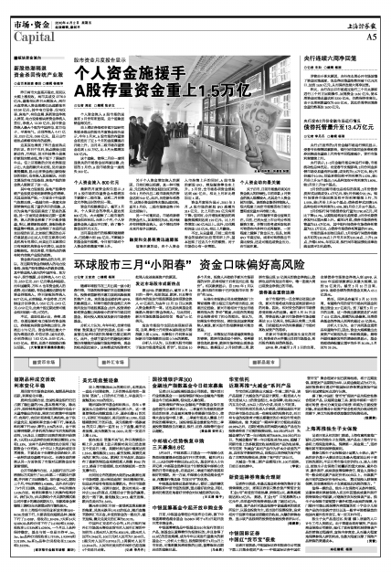 个人资金流入A股市场的速度在3月份有所显现,这个迹象显然值得关注。