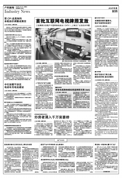 对于备受关注的铁矿石价格问题,何文波表示铁矿石的供不应求导致现货价格大幅上升已经是“既成事实”。这对宝钢原料成本会有较大幅度的提升,因此目前宝钢的钢材价格与去年平均水平相比已经有较大幅度的提升。不过他同时表示,如果钢铁需求可以持续,目前的价格水平可以保持,在铁矿石成本上升的条件下,宝钢的业绩仍然比去年有所改善。