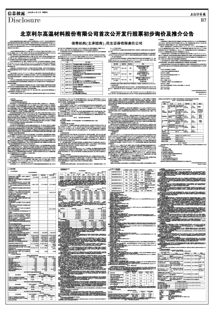 北京利尔高温材料股份有限公司根据《证券发行与承销管理办法》、《关于进一步改革和完善新股发行体制的指导意见》的相关规定首次公开发行股票。本次初步询价和网下发行均采用深圳证券交易所(以下简称“深交所”)网下发行电子平台进行,请询价对象及其管理的配售对象认真阅读本公告。关于网下发行电子化的详细内容,请查阅深交所网站(www.szse.cn)公布的《深圳市场首次公开发行股票网下发行电子化实施细则》(2009年修订)。
