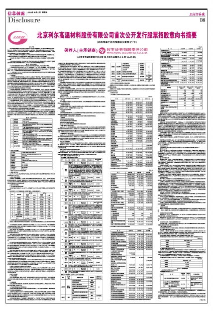 北京利尔高温材料股份有限公司首次公开发行股票招股意向书摘要
