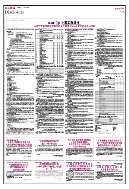 中国工商银行股份有限公司关于召开2009年度股东年会的通知