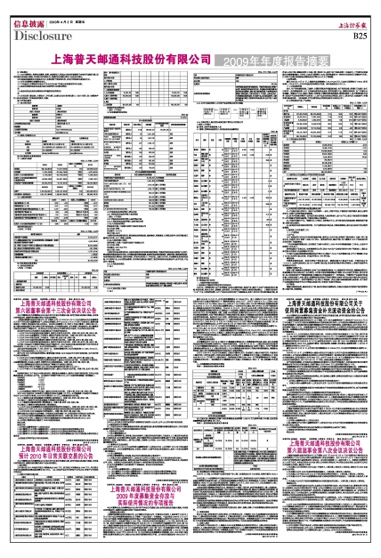 上海普天邮通科技股份有限公司2009年年度报告摘要