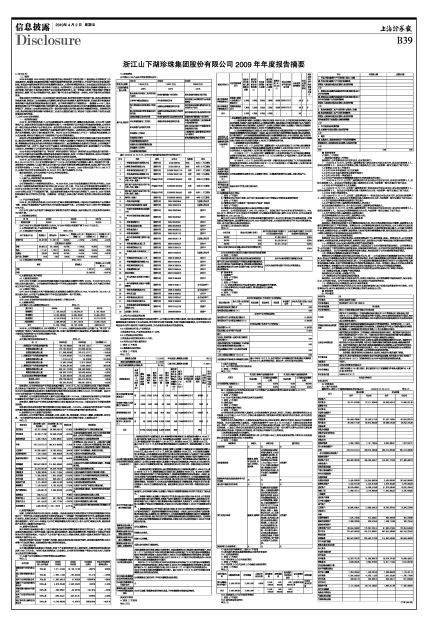 浙江山下湖珍珠集团股份有限公司2009年年度报告摘要