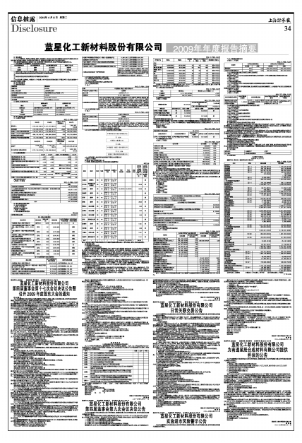 蓝星化工新材料股份有限公司第四届董事会第十七次会议决定召开公司2009年度股东大会。现将会议的有关事项公告如下: