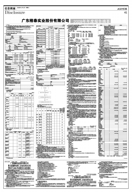 广东榕泰实业股份有限公司2009年年度报告摘要