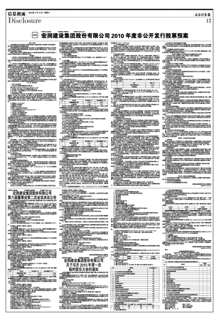 宏润建设集团股份有限公司2010年度非公开发行股票预案